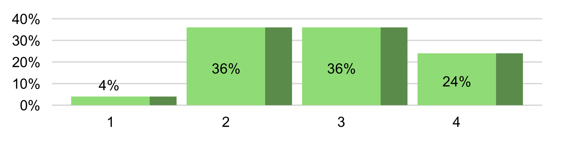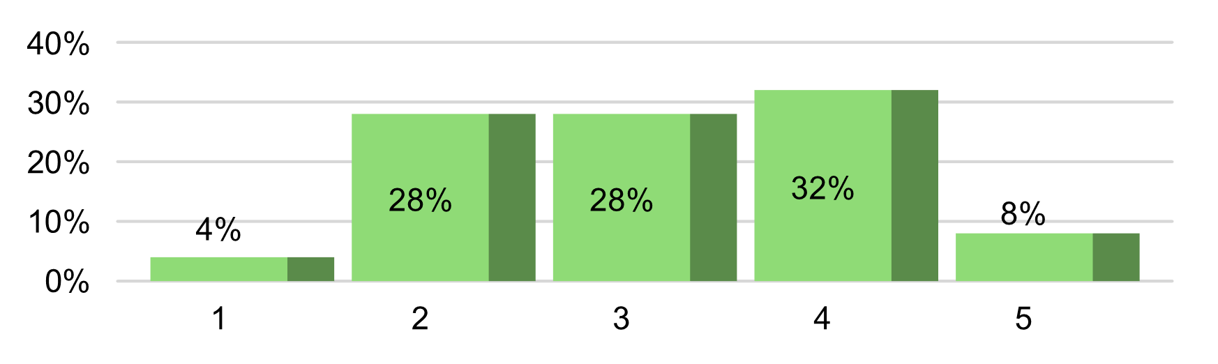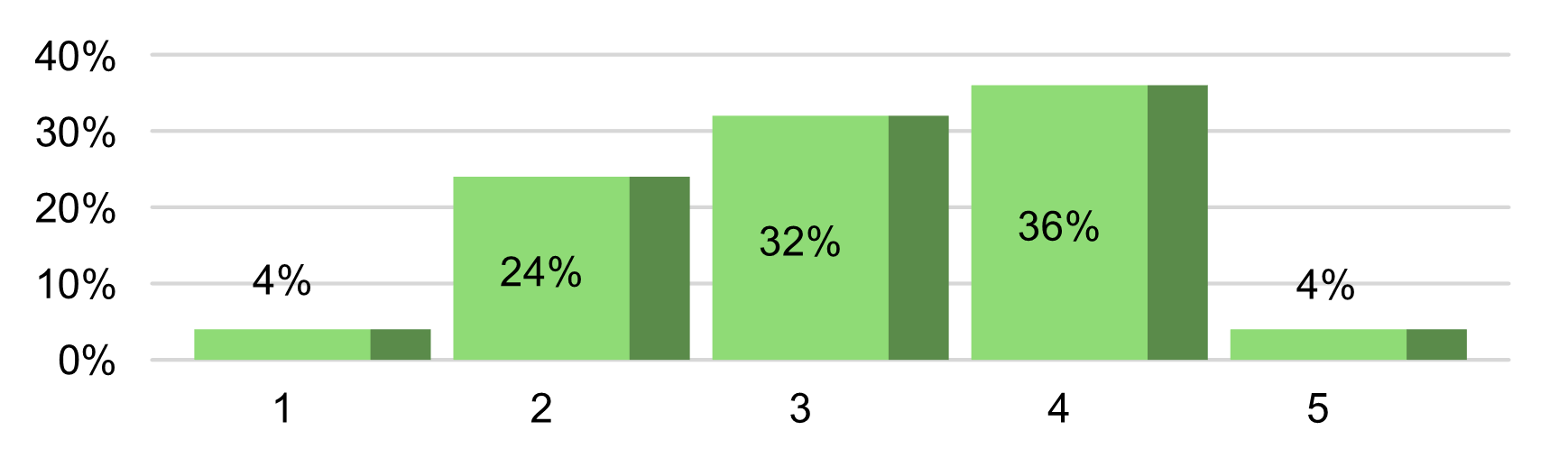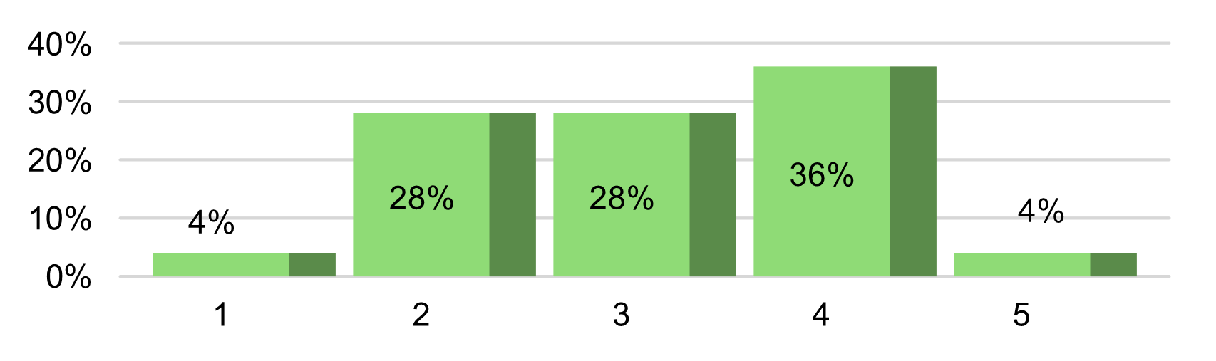En la figura anterior se puede apreciar que mientras un 36% de los encuestados considera que el plan anual de contrataciones es claro, solo un 4% lo ve como muy claro, sugiriendo que la mayoría aún encuentra áreas de mejora en la comunicación de estos procedimientos. Por otro lado, un 24% lo califica como poco claro